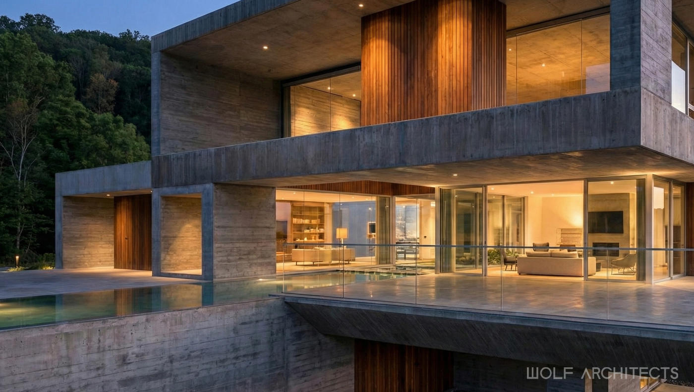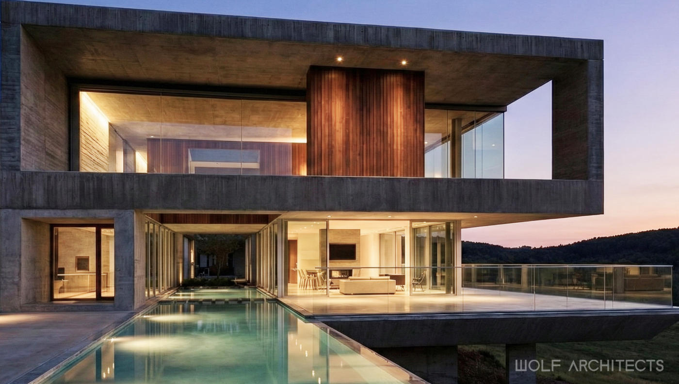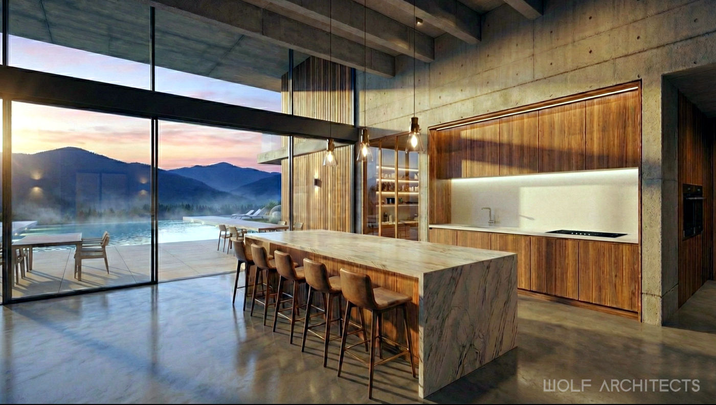 Mountain House by WOLF Architects is a testament to the firm’s ability to create luxurious, private, and highly customized living spaces. The residence combines durable materials with a design that harmonizes with the natural landscape, offering a seamless indoor-outdoor experience. The unique features, such as the infinity lap pool and private basement pool, highlight the innovative and client-focused approach of WOLF Architects. This project stands as an exemplary model of contemporary architecture, designed to meet the unique needs and desires of its celebrity owners.