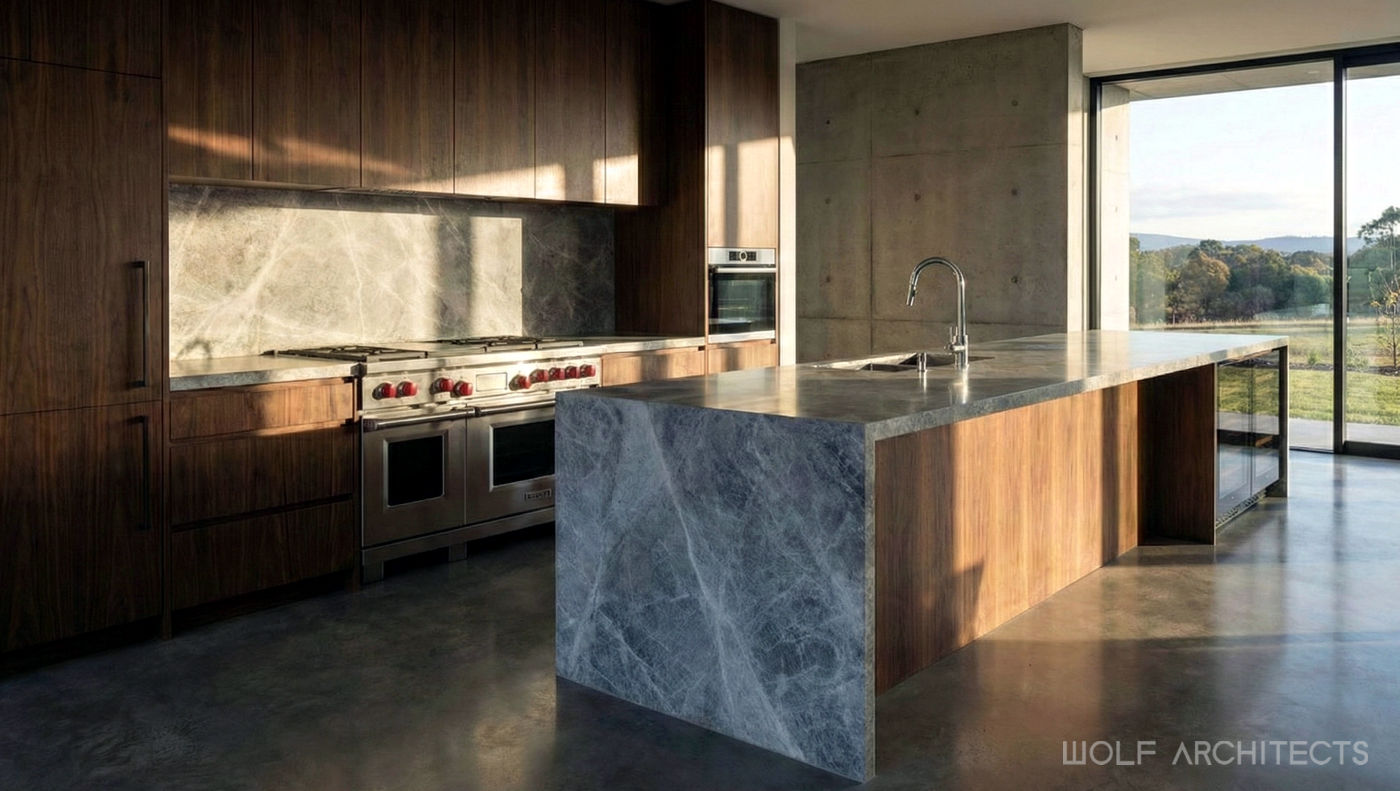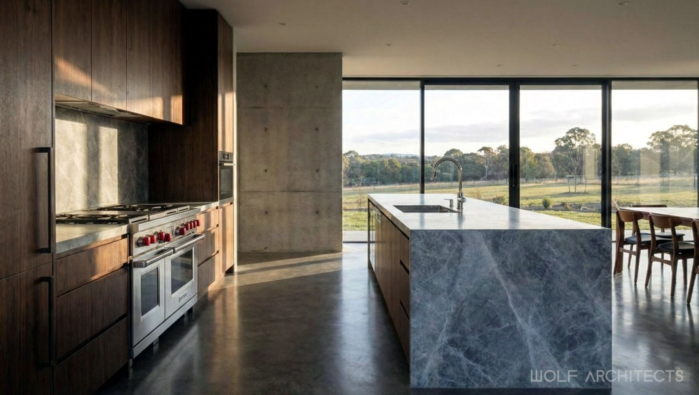 The “Jaonna House” by WOLF Architects is a serene family escape set on a sprawling 70-acre property in the countryside of NSW. This home celebrates the appreciation of space and breathtaking views, embodying a minimalist ethos with large, open interiors that eschew clutter. Furnished sparingly with select art pieces, the home functions as a living gallery, framing the surrounding landscape and showcasing special artworks. The design emphasizes tranquility and connection to nature, offering a sanctuary that seamlessly blends the beauty of the outdoors with the elegance of thoughtfully curated interiors.