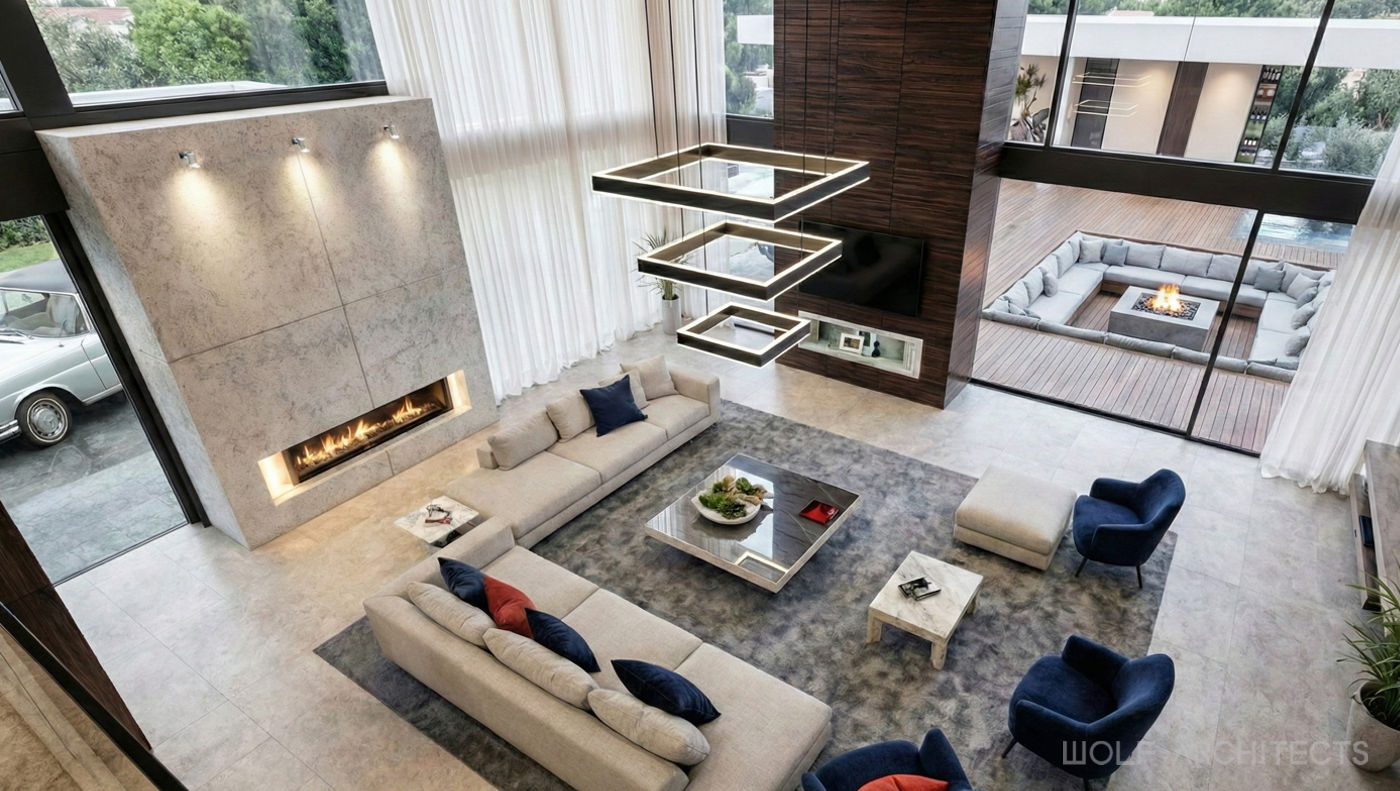This was a no expense spared home. The brief was simple; to build a modern day castle. Yet, as simple as that seems, it was indeed a long and complex process that required Wolf Architects to go above and beyond our best. The difficulty with very large homes is to keep them looking balanced without being too repetitive or out of scale. Proportion fortunately is one of the practice’s greatest strengths, which stems from founder Mr Wolf’s obsession during his University years with the proportions of ancient architecture. Based on perfect squares and the golden rectangle, the overall design is considered by Wolf Architects to be proportionately perfect. What essentially is a 3 level plus basement home reads visually as a double story building. The building’s cube-like form allows for views and light from the North, South, East and West.Symmetry was used extensively and harmoniously throughout connecting spaces together with stunning views throughout the home. Whilst the geometry of the house is generally square or rectangular most spaces see a single, strong angle in the form of a wall or column to break up the symmetry animating the space artistically.